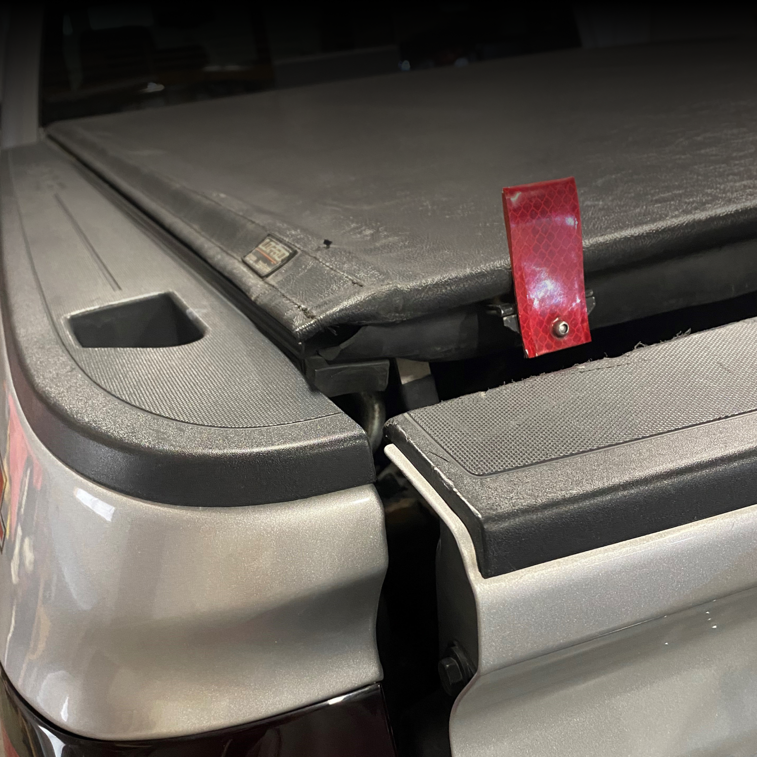 Introducing REAR MINDR, a tailgate flag designed specifically for truck bed covers or tonneau covers. This innovative product ensures maximum safety and convenience by providing a visible reminder in your rearview and driver's side mirrors when your tailgate is down. Equipped with a spring-loaded hinge, the flag effortlessly flips up whenever the tailgate is opened, and when closed, it neatly folds down tight to the top of your tailgate, seamlessly disappearing from view. With REAR MINDR, you'll never forget to raise your tailgate before driving off, and it serves as a constant reminder to exercise caution while accelerating, especially when hauling items that require the tailgate to be down. Stay mindful on the road with REAR MINDR.